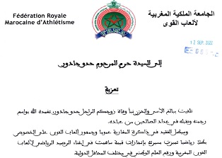 السيد عبد السلام احيزون رئيس الجامعة الملكية المغربية لألعاب القوى يعزي في وفاة المرحوم حدو جادور