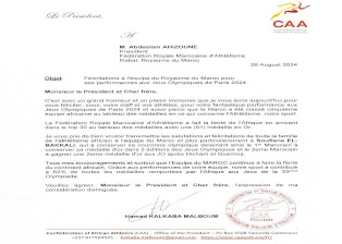 Lettre de Félicitations de la part du Président de la Confédération Africaine d’Athlétisme